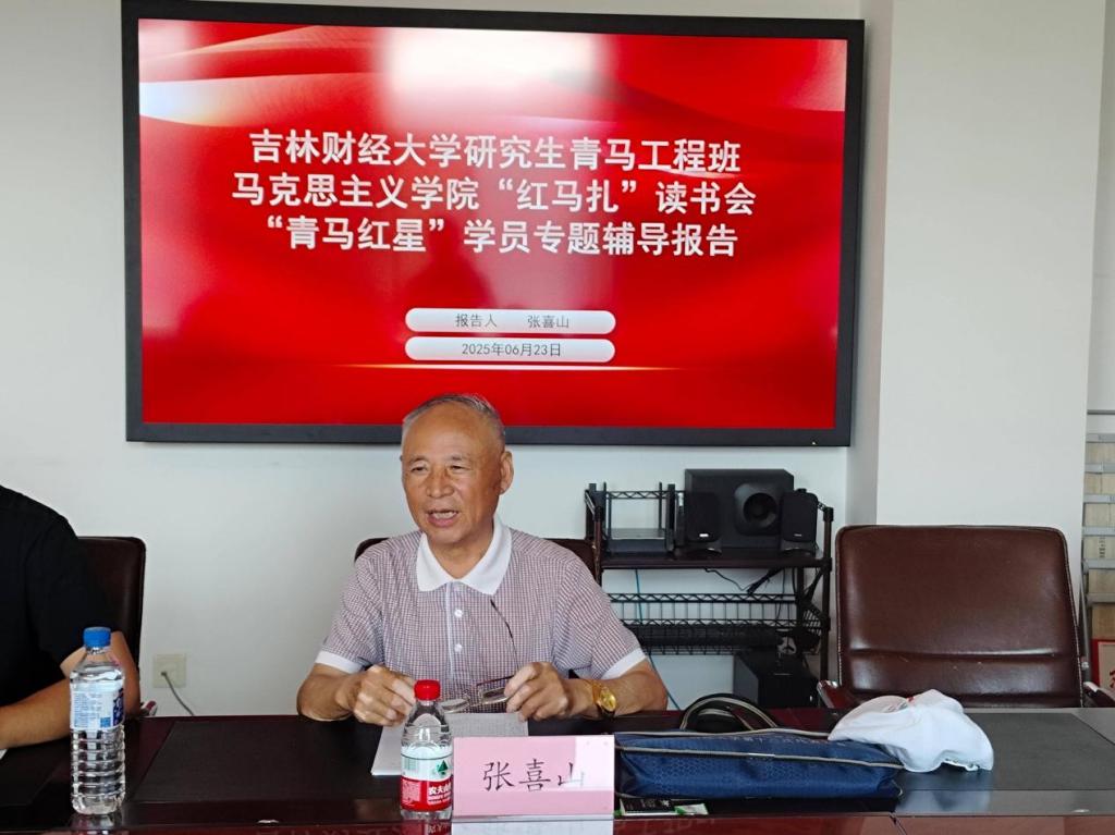 本网讯(马克思主义学院 供稿)6月23日,马克思主义学院举办研究生青马工程班暨“红马扎”读书会“青马红星”学员专题辅导报告会,学校关心下一代工作委员会主任张喜山作《实践论》专题报告。