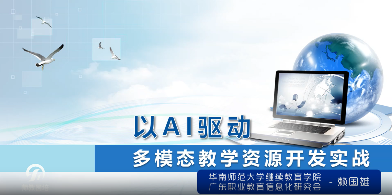 本次培训由华南师范大学网络教育学院设计总监、教育部“国培计划”讲师赖国雄担任主讲。他以“数智赋能教育、创新引领发展”为核心,系统阐述了人工智能技术与教学实践深度融合的理念与路径,为参训教师构建“AI+教学”新型能力结构提供了清晰的思路和方法。