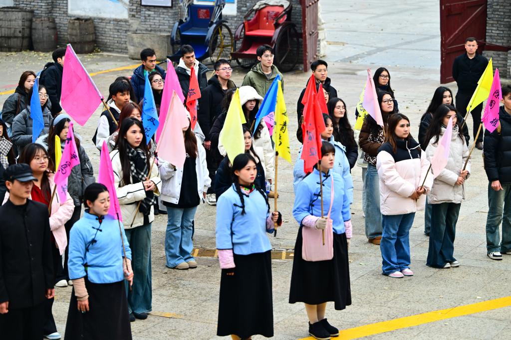 师生们集中观看了《跟着抗联打鬼子》《抗联志》《这是长春1948》三部红色主题演出。沉浸式的场景与动人的演绎,生动再现了东北抗日联军在极端艰苦的条件下,坚守阵地、奋勇抗敌的壮阔历程。杨靖宇、赵尚志等抗联英雄“冰天雪地食草棉,誓死不降报国魂”的壮烈事迹,展现了他们为民族独立、人民解放,不畏强暴、英勇斗争的钢铁意志,以及各民族同胞团结一致、共御外侮的深厚情谊。