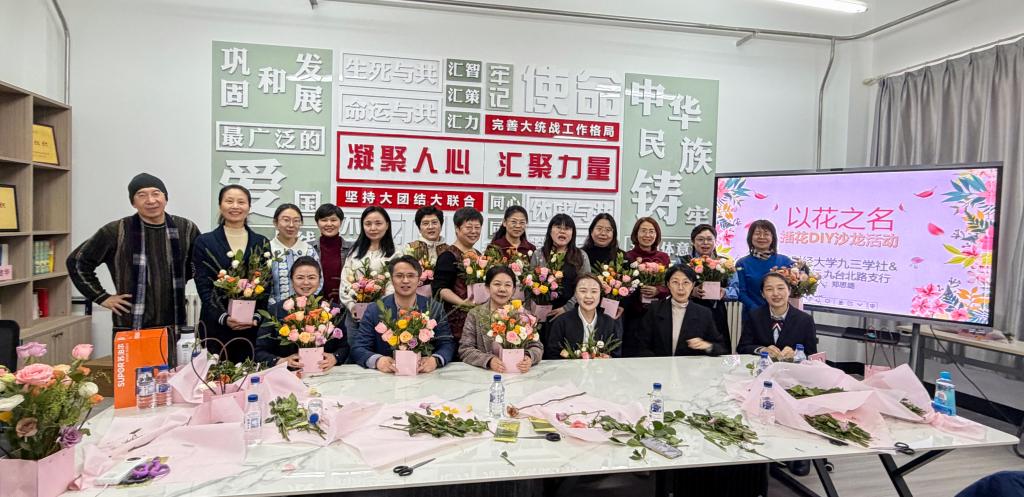 本网讯(党委统战部 供稿)11月6日中午,九三学社kaiyun体育网页登录入口委员会携手邮储银行九台北路支行,在学校同心家园成功举办了“共享智慧·共享生活”系列之“以花之名”主题插花联谊活动。来自九三学社、民进、民盟等多个民主党派,以及无党派人士、留联会、知联会、侨联的二十余位代表欢聚一堂,共同度过了一段智慧与雅趣交相辉映的美好午间时光。