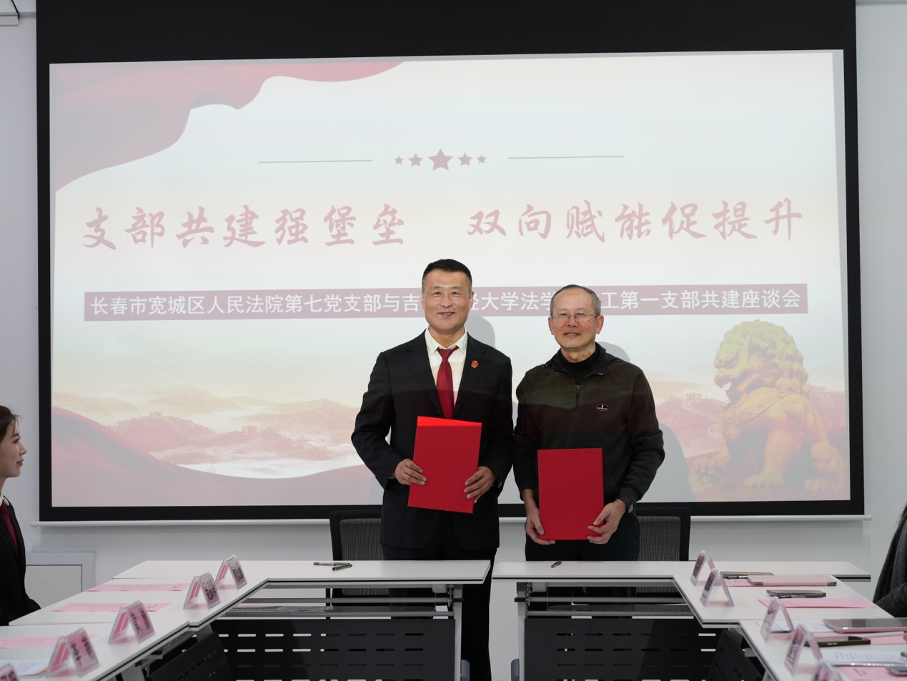 双方就未来共建计划展开交流。党建共建层面,双方就红色经典共读共建、警示教育联动授课、党建成果互鉴共建等内容展开讨论;院校合作层面,双方就科研项目申报、开展学术交流、学生实习平台建设、法官授课分享等展开交流;在校友共建层面,与宽城区人民法院校友亲切交流,双方就校友图书捐赠、普法宣讲等进行了深入探讨。会议气氛热烈,双方充分交流。