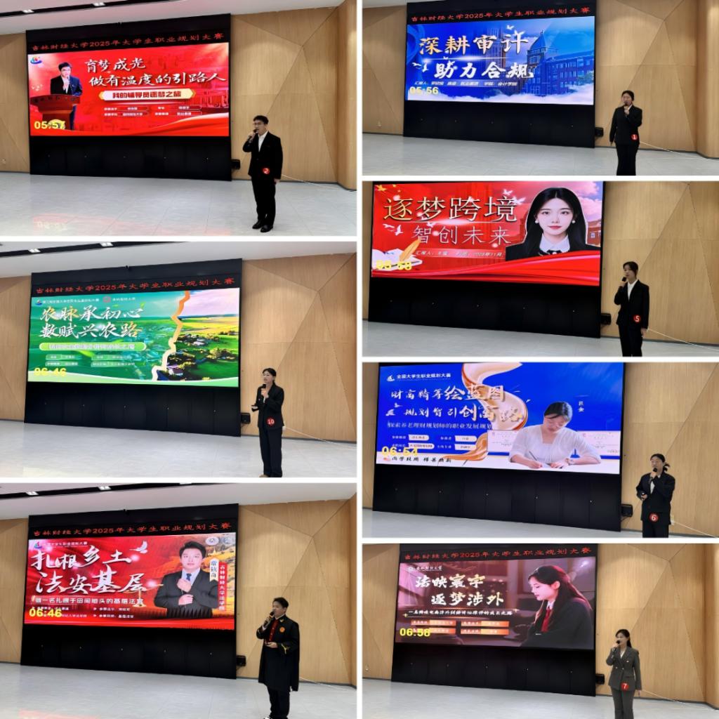 大赛设主题展示、评委提问两个环节。决赛现场,选手围绕职业目标设定、学习实践行动、岗位胜任力分析、优化改进等方面进行系统阐述,全方位展现了清晰的职业蓝图与良好的综合素养。评委根据选手情况,就自我认知、职业规划可行性、专业能力评估等方面进行提问和交流,并给出合理建议。