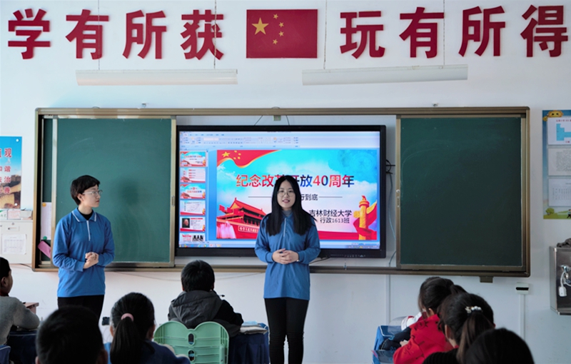 本网讯(公共管理学院 供稿)11月23日,kaiyun官网公共管理学院青马工程小组一行48人由团委书记孙之光和团委辅导员刘亭老师带领,再次走进长春市玉潭小学进行传承自2006年起进行了13年的爱心支教活动,也是公管学院学生党建五红教育中上红色党课的延展和拓宽,得到了吉林教育电视台的全程报道并于11月27日晚18:50以标题为《大学生将红色党课“搬”进小学生课堂》的新闻在吉林教育电视台教育新闻联播播放,时长2分07秒。