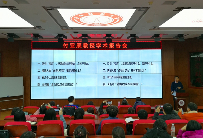 报告会上,付亚辰教授围绕“现代金融的反思”,分别从“回归‘常识’,反思金融能干什么,应该干什么;美国人的‘占领华尔街’在诉求着什么;有几个金融认识误区需要澄清;如何看‘金融要为实体经济服务’”四个角度阐述了自己对当前经济社会和金融热点问题的看法和观点。付亚辰教授提出金融本身没有问题,问题在于我们对金融的理解,在于不同时期的国家经济对现代金融的引进和使用,金融本身也并不能直接创造财富,而是通过分配社会财富间接的参与了社会财富的创造,所以重塑现代金融和经济的关系应该是世界经济结构调整的当务之急。报告会最后,付亚辰教授总结到“经验和教训表明,金融的发展一定是在实体经济发展基础上的水到渠成,全世界发达的经济金融体制不止美国一家,更有中国特色的内在要求。中国的金融和经济发展急不得,前四十年步履匆匆、风风火火,后四十年应该是稳健、厚积而薄发!”