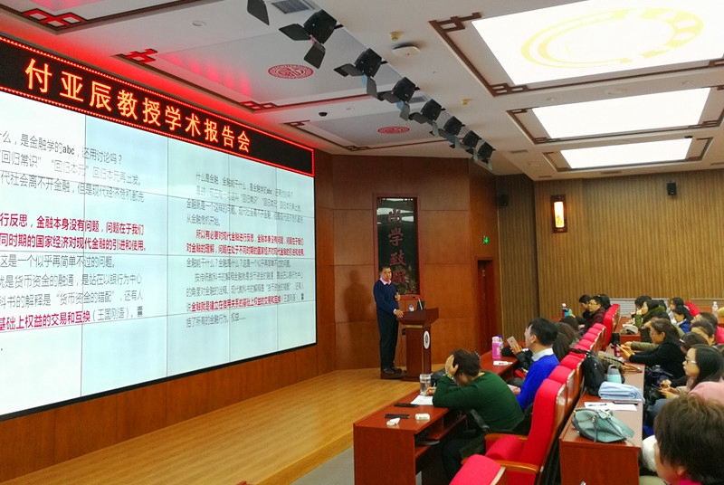 本网讯(九台农商银行金融学院 供稿)12月19日下午,九台农商银行金融学院在第一教学楼1202报告厅举办学术报告会,邀请九台农商银行金融学院原院长付亚辰教授作了题为“金融到底能干什么,现代金融的反思——兼谈虚拟经济和实体经济的关系”的学术报告。付亚辰教授现任吉林省政府参事,中共吉林省委经济决策专家咨询委员会委员,吉林银行独立董事,吉林省金融学会专家委员会委员;曾任政协长春市九届、十届、十一届委员、常委,吉林省金融学会、投资学会常务理事,kaiyun体育网页登录入口金融学科带头人。报告会由九台农商银行金融学院院长唐亚晖主持,参加报告会的有金融学院全体教师、研究生及部分本科生代表。