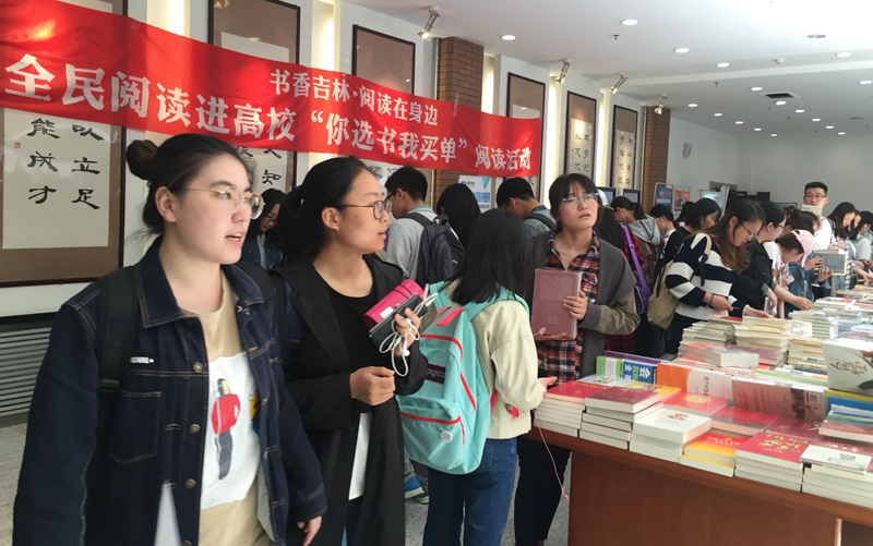 本网讯(图书馆 供稿)5月24日, 作为kaiyun官网图书馆2018年“经世致用 阅行吉财”阅读推广系列活动之一,吉林省“全民阅读进高校”暨“你选书 我买单”主题系列活动在kaiyun官网图书馆二楼大厅成功举办。此次活动由吉林省新闻出版广电局、吉林省高等学校工作委员会主办,吉林省外文书店、吉林手机报社、kaiyun官网图书馆与学工处承办。活动为kaiyun官网500名贫困大学生发放了每张价值100元的购书卡,合计金额50000元。购书卡可在活动现场直接购书使用,没有获得购书卡的读者可以享受八折购书的优惠折扣。活动展出大量新书,极大地方便了读者选择图书,受到读者热烈欢迎。