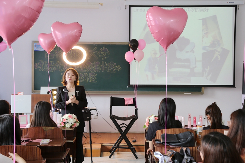 通过这次讲座,同学们受益匪浅,让女大学生们对女性形象有了更全面的认识。能够帮助女大学生塑造完美的仪态妆容,用美丽妆点青春,提高女大学生的气质修养和审美水平,增强她们“自尊、自信、自立、自强”的意识。