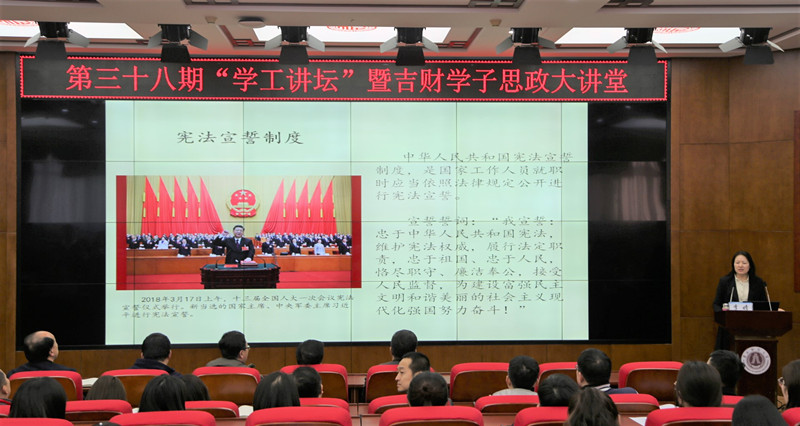 本网讯(学工处 供稿)为进一步抓好《kaiyun体育网页登录入口开展大学生思想教育主题活动方案》的贯彻落实,围绕3月份“形势政策教育”主题,学习贯彻全国“两会”精神,进一步提高辅导员老师和学生骨干的法治意识。由学生工作部(处)武装部主办、公共管理学院学工办承办的第三十八期“学工讲坛”暨吉财学子思政大讲堂活动于3月27日下午在第一教学楼1202室举行。学生工作部(处)武装部工作人员、各学院专职辅导员及部分学生骨干参加了此次会议。会议由学生工作部(处)副部(处)长赵彦双主持。