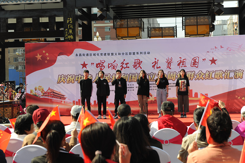 红歌向党颂繁荣,社区情暖奏和谐。27日一早,国经学院的学生就来到永昌街道区域化党建联盟义和分区联盟的活动现场。长春市德苑公园喜气洋洋,到处洋溢着喜庆的气氛。党建联盟各成员单位党支部都带着对祖国母亲的热爱,以歌唱的形式为祖国母亲献上衷心的祝福。