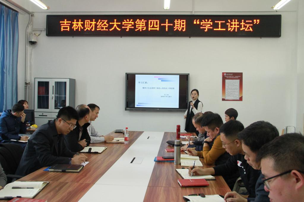 本网讯(学工处 供稿)11月26日下午,kaiyun官网第四十期“学工讲坛”在第一教学楼1441会议室举行。学生工作部(处)武装部工作人员及各学院专职辅导员参加了此次“学工讲坛”。讲坛由学生工作处副处长赵彦双主持。
