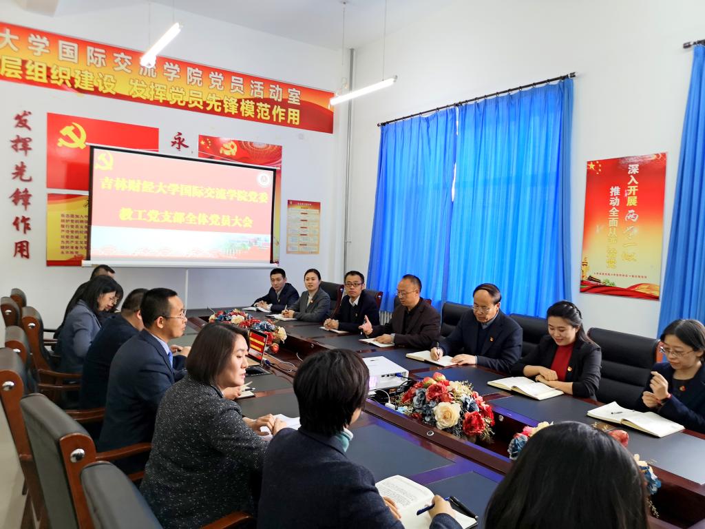 本网讯(国际交流学院 供稿)11月21日下午,国际交流学院教工党支部在学院党员活动室召开全体党员大会,此次大会是全省首批“基层党支部组织生活指导日”活动之一。