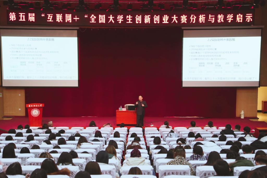 本网讯(教务处 亚泰工商管理学院 供稿)11月27日下午,在教务处指导下,亚泰工商管理学院、创新创业研究中心邀请到了吉林大学管理学院周柏翔教授,在图书馆报告厅举办了一场以“第五届“互联网+”全国大学生创新创业大赛分析与教学启示”为主题的教学讲座活动。此次活动由亚泰工商管理学院卞志刚副院长主持,《大学生创业基础》课教学团队的老师和400余名生们参加了此次活动。