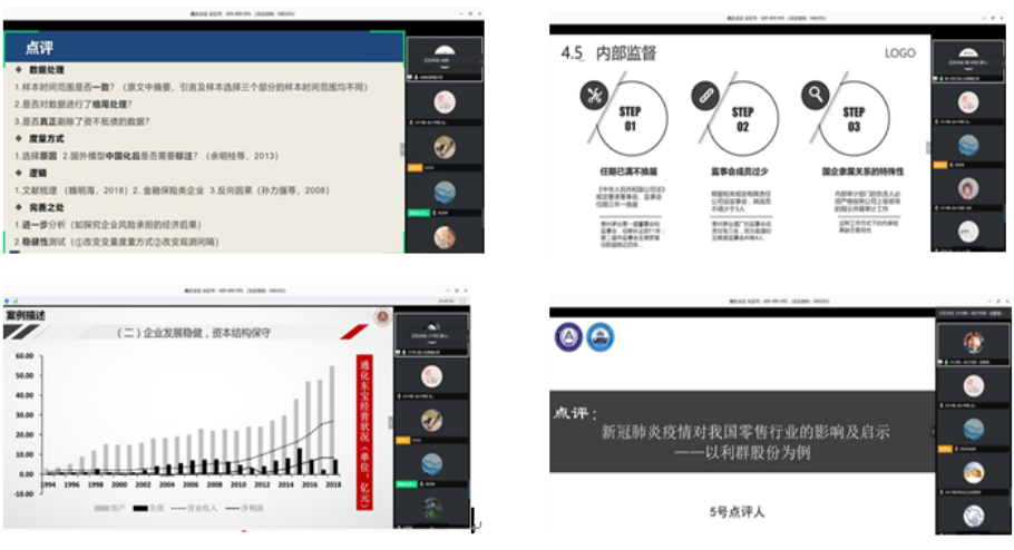 会计学院此次研究生学术活动是从2019年12月5日开始征集参会论文,截至4月15日,历时4个多月,共收到参会论文38篇。经过学院11名青年博士教师从论文结构、语言表达和研究深度三个方面匿名盲评,最终筛选出投稿论文总量的60%(23篇论文)进行交流汇报。学术论坛交流中,会计学院五名青年博士教师作为评委再次从PPT设计、创新视角、结构安排和研究深度四个方面现场打分,最终评选出一等奖3名、二等奖8名、三等奖12名。会计学院副院长王丽南宣读了论文获奖名单,其中一等奖论文为:注册会计师行业专长、关键审计事项及盈余管理的关系研究,作者为2018级会计学术研究生徐梦;事务所审计与上市公司管理演化博弈分析,作者为2019级会计专业硕士王姝妍;瑞华会计师事务所会消失吗?作者为2019级审计专业硕士邢赢予。
