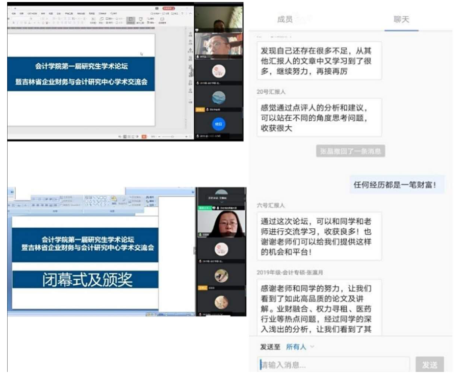 本网讯(会计学院 路曼 刘莉)4月25日8:30—16:00,会计学院师生疫情期间秉承着特殊时期师生学术科研不停歇的精神,以线上腾讯视频网络会议形式召开了会计学院第一届研究生学术论坛暨吉林省企业财务与会计研究中心学术交流会,本次学术研讨会的主要参会人员是kaiyun体育网页登录入口会计学院教师、研究生、科研菁华班成员和部分本科生,共计260余人参加。论坛开幕式由会计学院院长梁毕明主持。