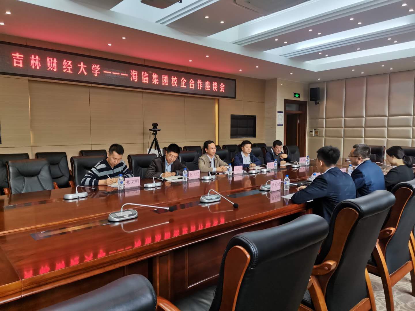 座谈会上,梁毕明院长、赵彦双书记、许峰副书记、张文明科长分别从人才培养、实习实训、就业见习、设立海信俱乐部、海信奖助学金、海信夏令营、笃行就业讲坛等校企合作需求方面,提出一系列合作思路和建议,希望双方能够采取多种形式,更紧密合作。随后,杨可多副总经理、李妍总监与人资负责人李天缘从不同方面介绍海信集团的发展与前景,认为海信集团的务实精神与学校的明德崇实校训精神相契合,希望通过加强校企合作将优秀的吉财学子揽入海信集团,壮大海信团队,也是海信集团引进人才战略的具体落实。
