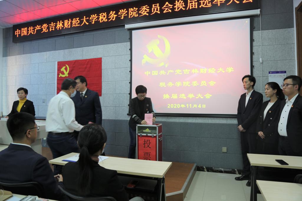 随后,大会按照本次换届选举大会选举办法,以无记名投票、差额选举的方式,选举马莹、王再堂、孔薇、许峰、苏扬、赵彦双、赵黎光、黄莹、董蕾等九位同志(以姓氏笔画为序)为税务学院党委新一届委员。