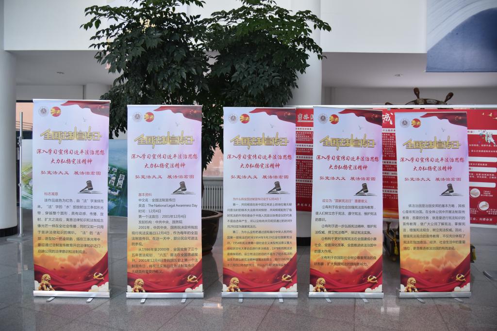 法学院为迎接宪法日,精心制作宣传标语,努力营造宣传氛围。12月3日,十五条法制宣传日暨宪法日主题横幅飘扬在学校的每个角落,十幅全国法制宣传日宣传展架在综合楼一楼大厅展出,“弘扬宪法精神,树立宪法权威”、“学习宪法,宣传宪法,遵守宪法”等宣传标语随处可见,一番精心布置充分营造出了浓厚的法制宣传氛围,让全校师生沐浴在了法制教育的阳光下。