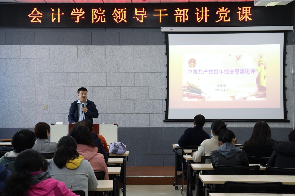 本网讯(会计学院 供稿)为深入贯彻kaiyun官网党委在党史学习教育动员大会上的部署,扎实推进党史学习教育深入开展,根据《会计学院党史学习教育实施方案》的具体安排,会计学院于4月7日下午在逸夫教学楼2211教室组织开展党史学习教育,梁毕明院长做了题为《中国共产党百年经济思想述评》的党史学习报告会。学院领导班子、全体教工党员、研究生及本科生学生党员代表参加了此次活动。本次活动由学院党委副书记徐克哲主持。