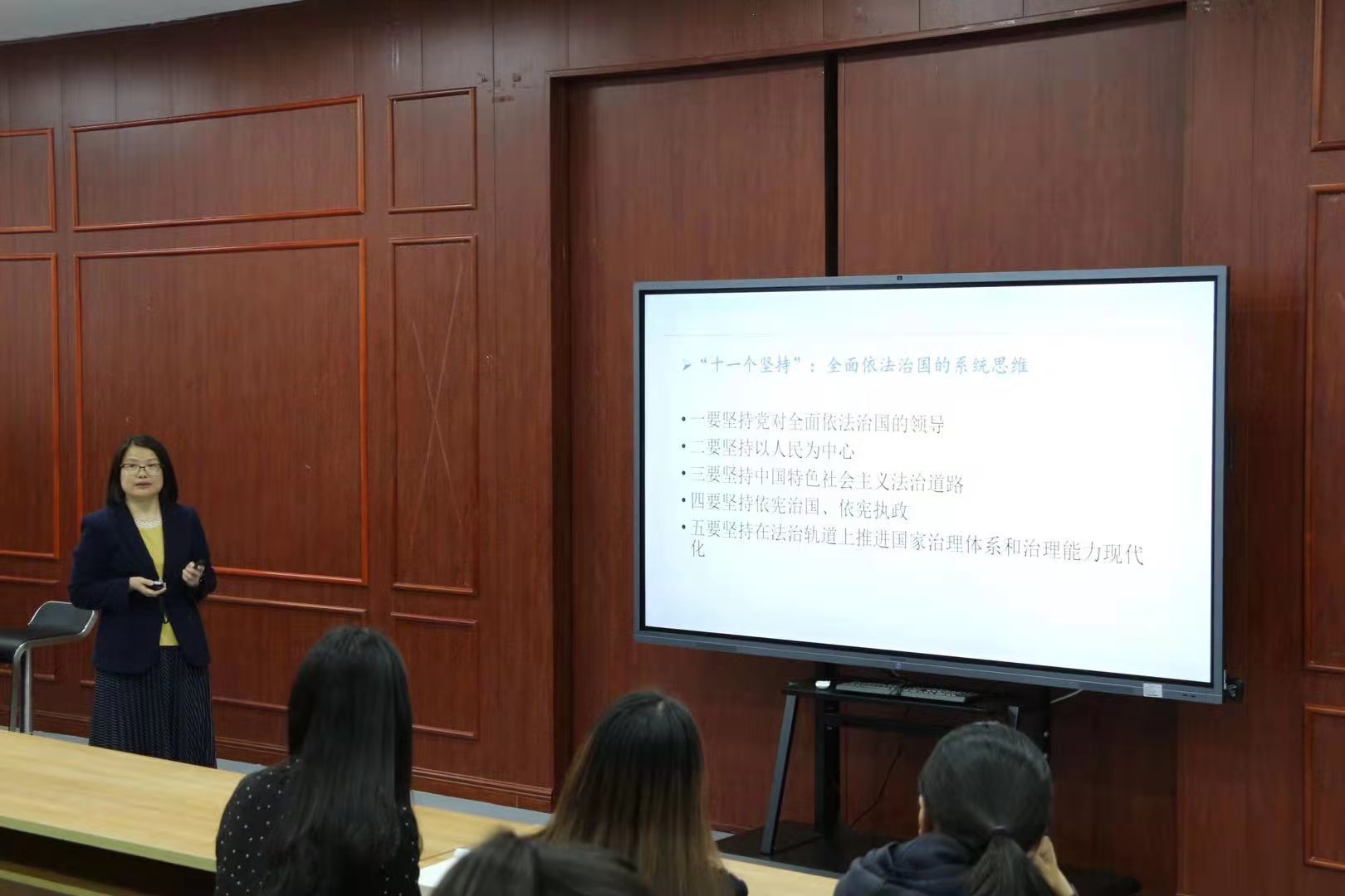 法学院王开宇副院长代表法学院在讲座结束时对任喜荣教授的精彩讲座表达感谢,同时,希望同学们认真学习“习近平法治思想”,成长为政治过硬的卓越法律人,为国家的法治建设作出贡献。(审核人 仇晓光)