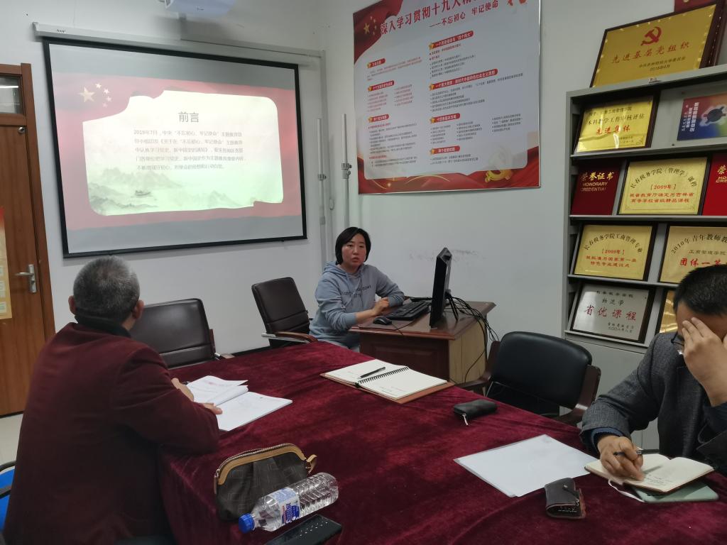进行活动第一项,卞志刚书记向大家介绍了学校“三化一推进”党史学习教育的总体工作安排,从学习任务任务清单化、教育内容实效化与教育部门责任化三个角度详细解读了“三化”的主要内容,并从推进立德树人根本任务的落实和学校事业高质量发展的“一推进”宗旨下厘清本支部在未来学习教育活动中的主要任务,强调在当前“以本为本回归教学”的背景下如何提升教学工作质量,打造kaiyun体育网页登录入口的特色与品牌。