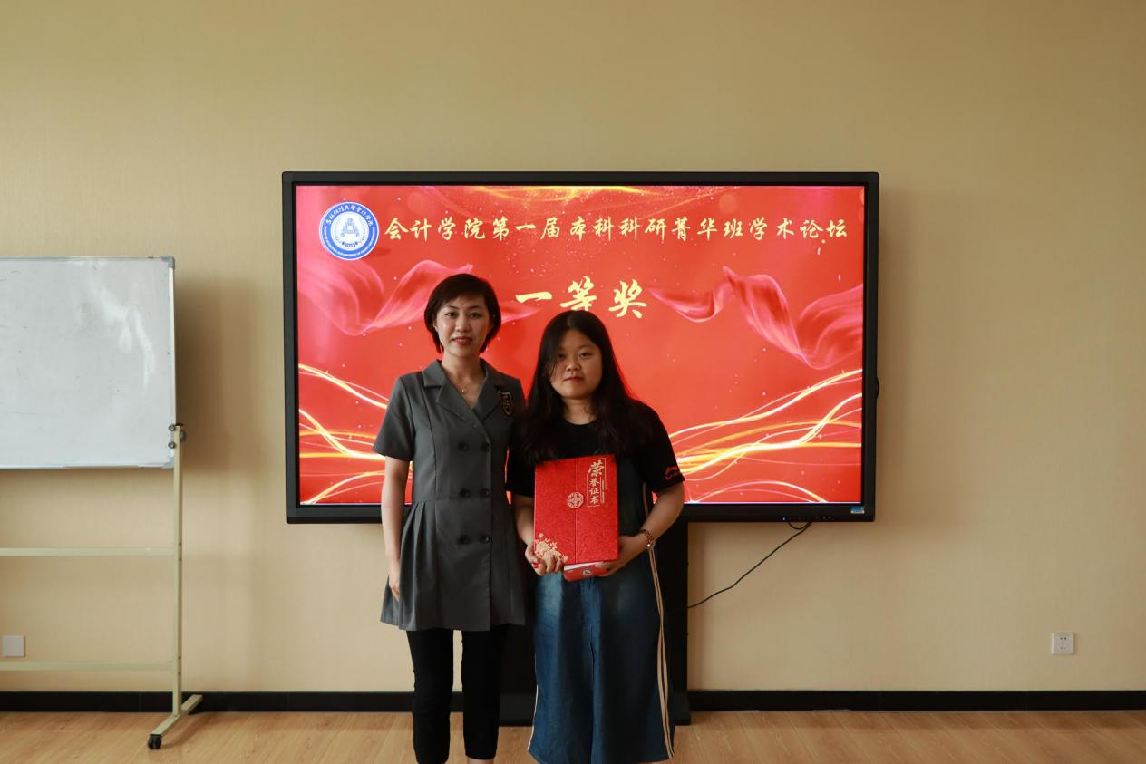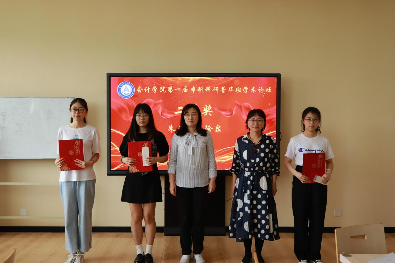随后,会计学院副院长李阳老师为李双同学颁发一等奖;会计系主任周园老师和张晶老师为朱亚楠、徐泉、杨宇同学颁发二等奖;会计学院胡玮佳老师、关博文老师和张奥老师为张司奥、邵紫微、张佩、李嘉宁、李军宜同学颁发三等奖。最后,班主任邵方婧老师在大会尾声为菁华班全体学员送上祝愿,希望各位同学能够珍惜学术交流机会、广泛交流、启迪思维。