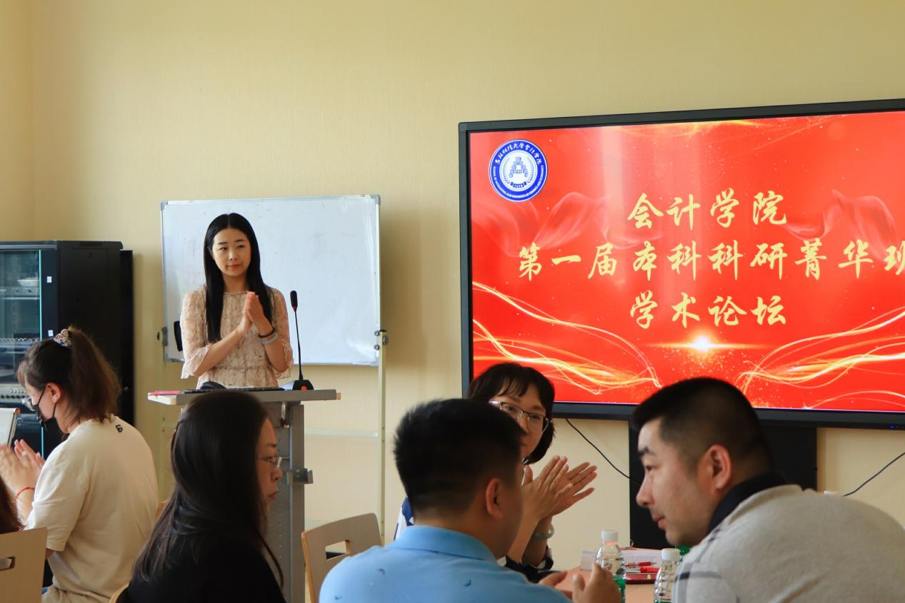 论坛开幕由会计学院菁华班班主任邵方婧主持,kaiyun体育网页登录入口会计学院副院长王丽南莅临致开幕辞,王院长表示本次交流会的论文选题新颖多元化,菁华班同学能够在本科期间即对于内部控制、财务绩效等多方面企业管理内容进行研究,正符合kaiyun官网作为省属高校所应具备的专业性、创新性科研意识的体现,同学们对于企业技术创新系列问题的分析研究,更是拓展了会计学院学术研究的广度,也希望在场同学能够通过本次学术论坛对于优秀论文的深入研究讨论,积累学术经验,更加用心投入到科研工作当中。