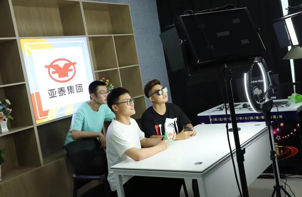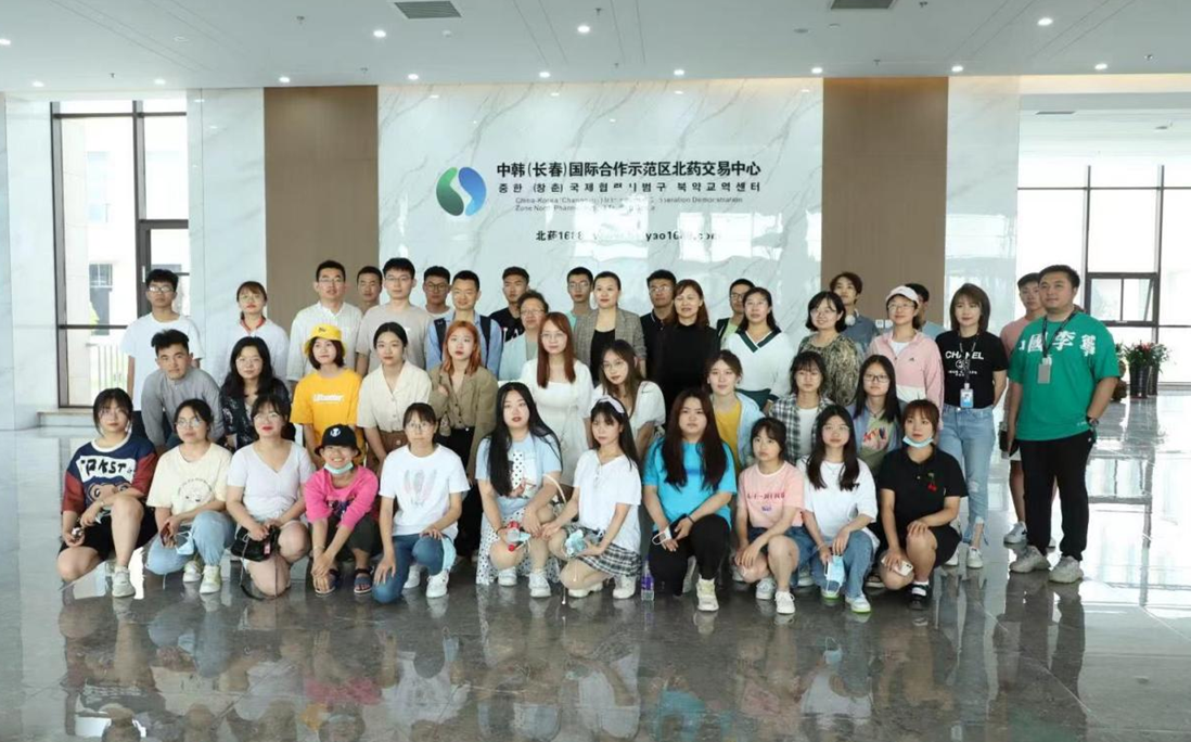 参观考察过程中,亚泰工商管理学院师生代表先后观看中韩(长春)国际合作示范区北药交易中心宣传片,参观了北药交易中心数字化展厅、亚泰医药物流中心、亚泰制药智能化生产车间、直播孵化基地直播间、产品区和选品区,并让学生现场观摩、体验直播间直播带货实操。随后,双方领导还就校企合作事宜进行了深入交流。最后,亚泰工商管理学院师生代表与中韩(长春)国际合作示范区北药交易中心工作人员合影留念。