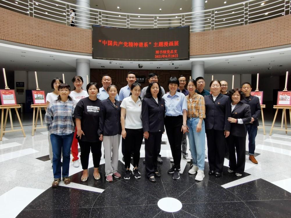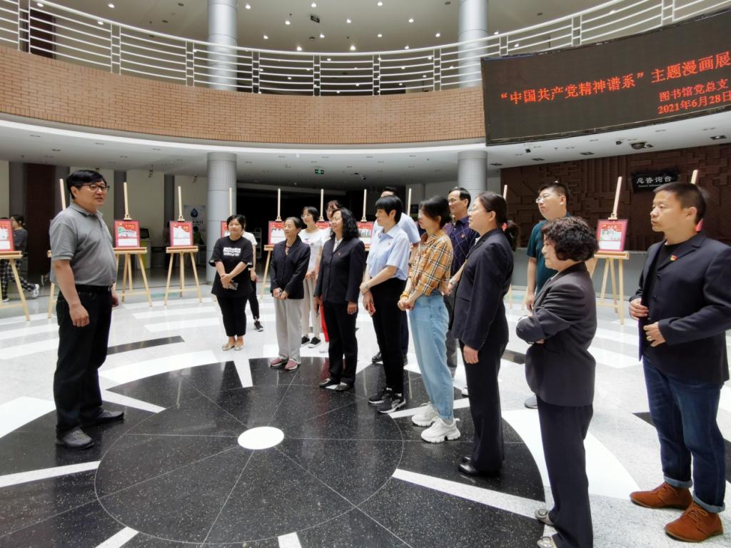 本网讯(图书馆 供稿)为庆祝中国共产党成立100周年,扎实有效开展党史学习教育,图书馆党总支创作举办“中国共产党精神谱系”主题漫画展,于6月28日开始在图书馆大厅进行展出。
