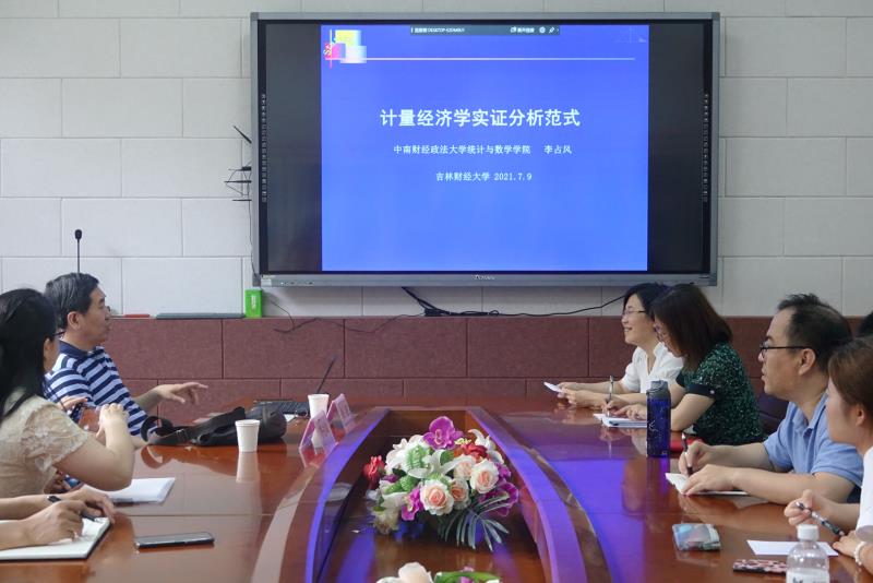 本网讯(统计学院 供稿)2021年7月9日上午,应统计学院邀请,中南财经政法大学李占风教授在综合楼145室作了主题为“谈谈经济计量学实证分析范式”的学术报告。会议由统计学院院长李国荣教授主持,统计学院青年教师和研究生参加了此次报告会。