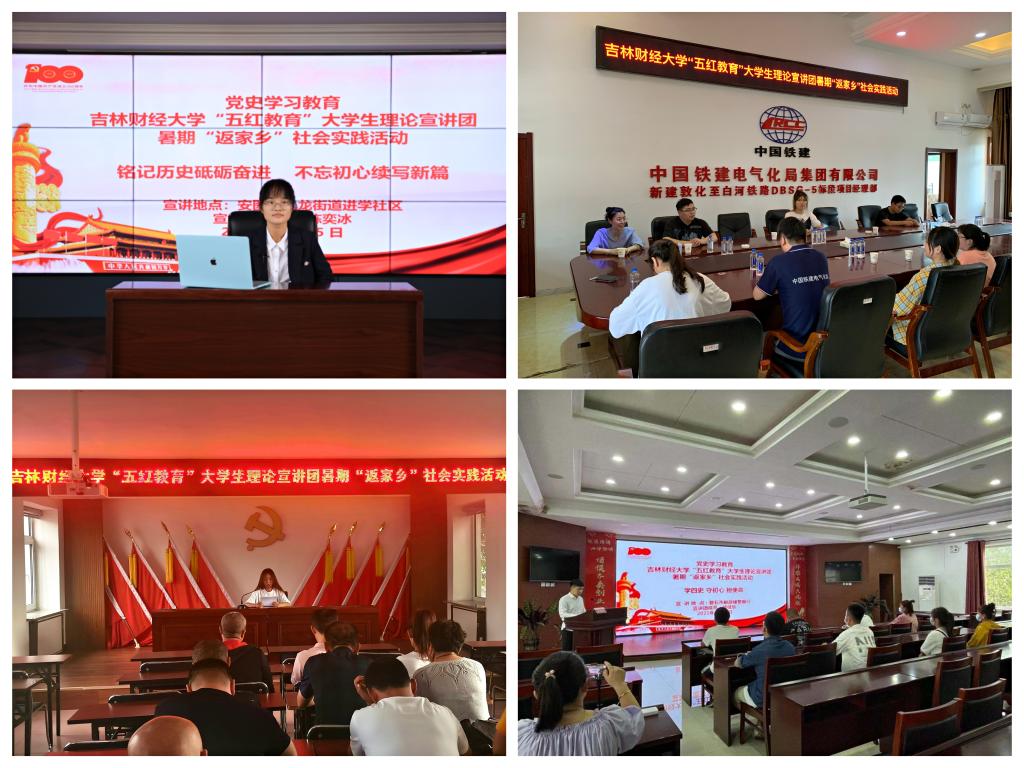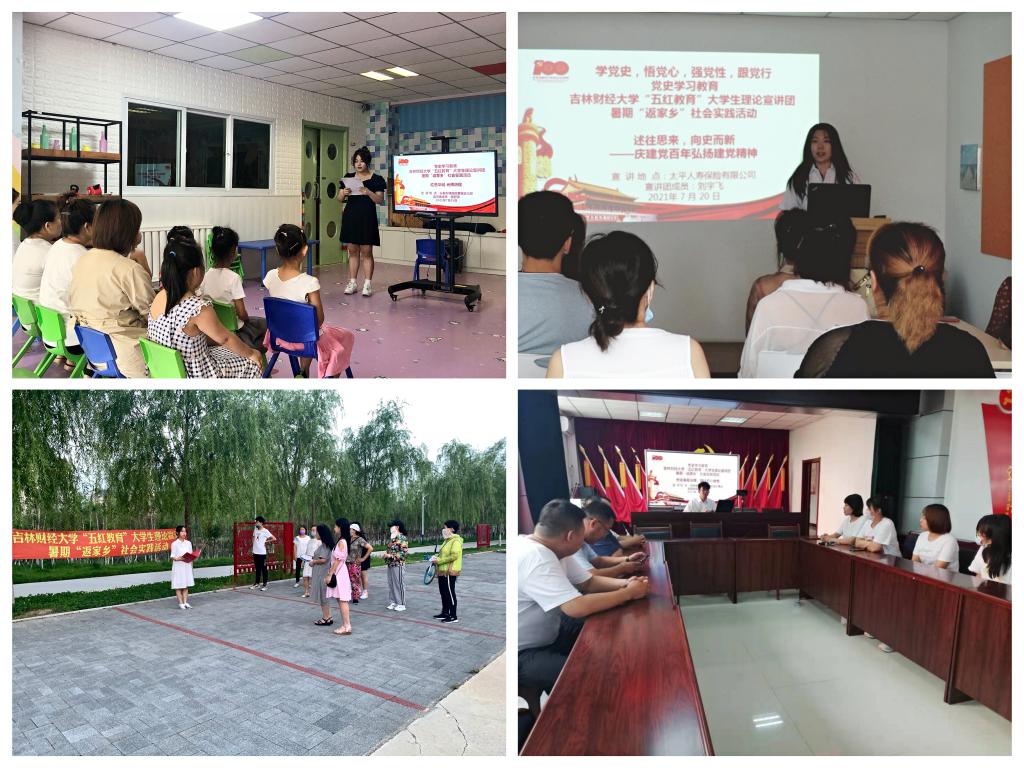 本网讯(公共管理学院 供稿)为深入学习宣传贯彻习近平总书记关于青年工作的重要思想,组织引导广大青年学生在家乡的热土上、在实践的课堂中受教育、长才干、作贡献,结合党史学习教育,经过申报,“五红教育”大学生理论宣讲团入选2021年吉林省大学生“三下乡”活动全省重点团队,并推荐为全国重点团队。利用暑假期间,公共管理学院组织32名宣讲团成员到吉林、辽宁、山西、江西、广西等5个省份26个地区开展暑假返家乡理论宣讲社会实践活动,引导学生党员和积极分子增强“四个意识”,坚定“四个自信”,做到“两个维护”。全国高校思政工作网报道了此次社会实践活动。
