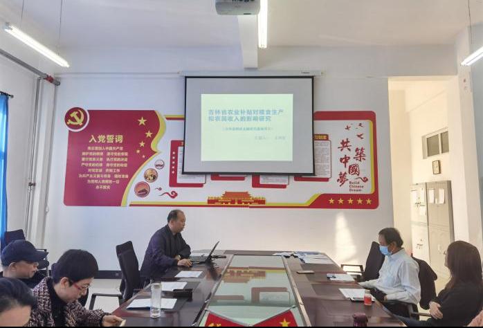 报告会开始后,教师申庆喜围绕其教育部项目《基于高质量发展的大城市主要功能耦合格局、效应与重构路径研究》进行了详细汇报。教师刘学梅就其教育部项目《构建新发展格局研究》、省社科项目《吉林省数字经济发展战略途径研究》进行了汇报。副院长刘艳龙就其省社科项目《吉林省畅通经济循环深度融入新发展格局的对策研究》进行了汇报。院长张洪梅教授就其省社科重点项目《吉林省黑土地保护利用的理论与实践研究》进行了汇报。教师韩艳红就其省社科项目《吉林省农业产业链增值机理及路径优化研究》进行了汇报。教师周璐瑶就其省社科项目《乡村振兴战略下吉林省农村公共服务供给优化问题研究》进行了汇报。