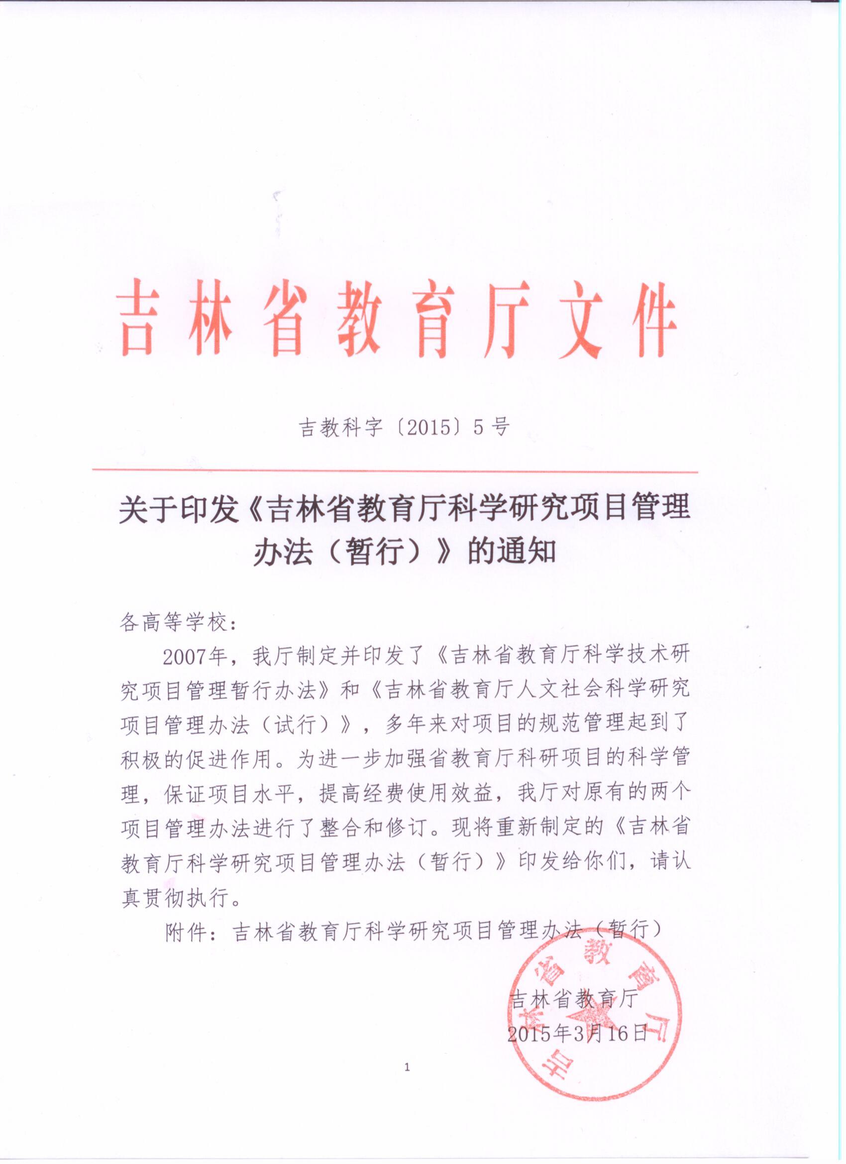 附件:吉林省教育厅科学研究项目管理办法(暂行)