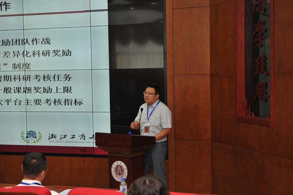 开幕式后,大会进入主题发言环节,分别由中央财经大学科研处处长贾玉革、东北财经大学科研处处长范立夫主持。浙江工商大学社科处处长范钧、广东外语外贸大学科研处处长陈平、重庆工商大学科研处处长曾庆均、对外经济贸易大学科研处副处长李岩、中南财经政法大学张今柯、山西财经大学胡涛等做了精彩发言。