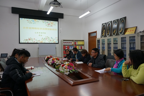 首先进行汇报的是席琳课题组,立项题目为《吉林省网络经济治理创新研究》。项目组成员刘畅老师作为代表发言,她从当今社会的变革谈起,提出在网络经济时代,政府作为经济、文化和社会活动的参与者和服务者,需要发挥引导性作用。与会人员分别从政治意义、理论意义、现实意义三个角度对项目的选题进行了充分的交流,认为本课题具备研究的意义和价值,对有效破解结构性缺陷,保证我国网络经济的可持续发展提供相应的理论支持。