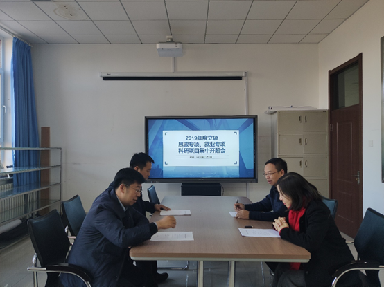 按照科研处统一要求,2019年11月8日上午,在文体中心206室进行了2019年度立项思政专项、就业专项科研项目集中开题会,2019年度立项的王利国、张文明、孙之光、陈超参加。开题会上,立项人员就个人课题进行开题汇报,参会人员就每个人的项目进行咨询和点评,并就课题进行提出建议和意见。