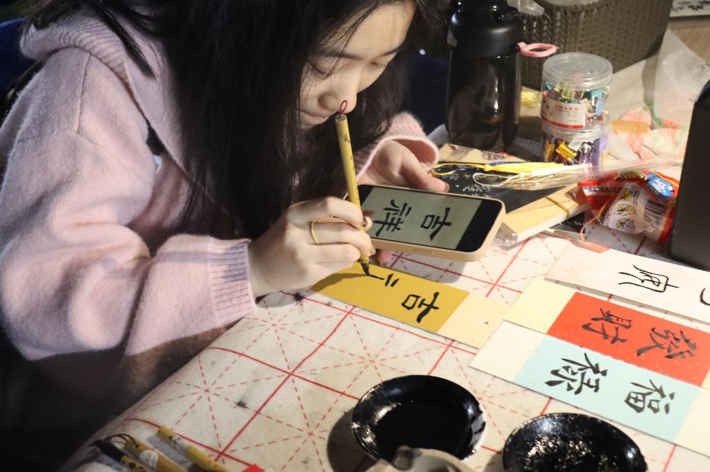 活动中,墨缘书法协会首先登场,一幅幅书法作品行云流水,展现着中华文化的博大精深;随后,桃夭汉韵文化社展示各位成员创作的传统手工艺品,并与观众一起制作,用行动诠释着文化的传承与创新;心语志愿者协会的节目充满温暖与力量,每一个画面都彰显着爱心奉献精神;隅山读书协会的宣传讲解,让观众们感受到了知识的魅力和阅读的快乐;最后,刀笔油画社团的成员以刀为笔,以画布为纸,向观众们生动展现了刀笔艺术的魅力。