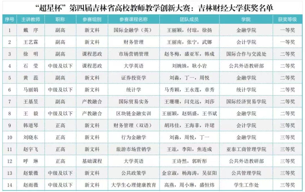 2020年,教学团队在智慧树平台上线《财务管理》慕课,已成功运行10个学期,该课程于2023年获评第二批国家级一流本科课程。专业必修课《资产评估》获评吉林省高等学校省级优秀课程。2021年,教学团队在智慧树平台上线《资产评估》慕课,已成功运行6个学期,广受好评。