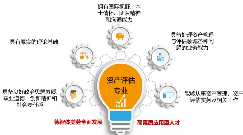 资产评估专业旨在培养具备良好政治思想素质、职业道德、创新精神和社会责任感,具有厚实的经济、管理、资产评估理论基础,掌握会计、财务管理、金融投资等相关知识,熟悉资产评估方面的方针政策、法律法规,拥有国际视野、本土情怀、团队精神和沟通能力,具备处理资产管理与评估领域各种问题的业务能力,能够在资产评估机构、会计师事务所、国有资产监督管理机关、司法机关、投资银行、海关、房地产交易部门、珠宝与文物鉴定部门、大型公司内部评估机构等从事资产管理、资产评估实务及相关工作的德智体美劳全面发展的高素质应用型人才。