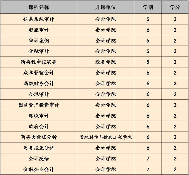 学制与学位:审计学专业的基本学制为4年,最长修业年限为6年;授予管理学学士学位。