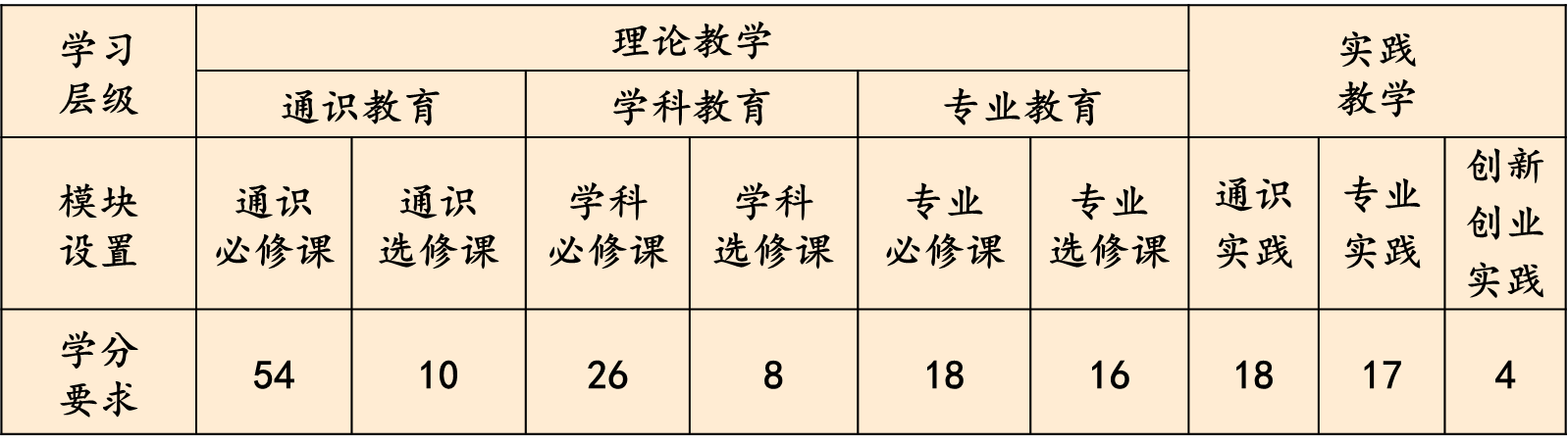 其中,理论教学132学分,实践教学39学分,合计171学分。