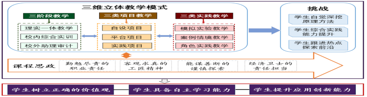(1)实务导向的课程定位。将审计理论与实务交融,突出课程实训和审计实践,有效对接社会需求,培养高素质应用型人才。