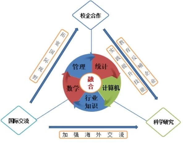 以应用能力培养为目标,以管理、统计、计算机等多学科知识融合为核心,以国际合作、科学研究、校企合作为“外延”的复合型、应用型人才培养模式。依托本校的优势学科,培养熟练掌握大数据管理与应用完整知识体系和电子商务、金融、互联网经济等行业应用技能,以错位发展为理念,以服务地方经济建设为目标,深耕地方产业,谋求“特色”“精准”的大数据管理与应用人才培养模式。