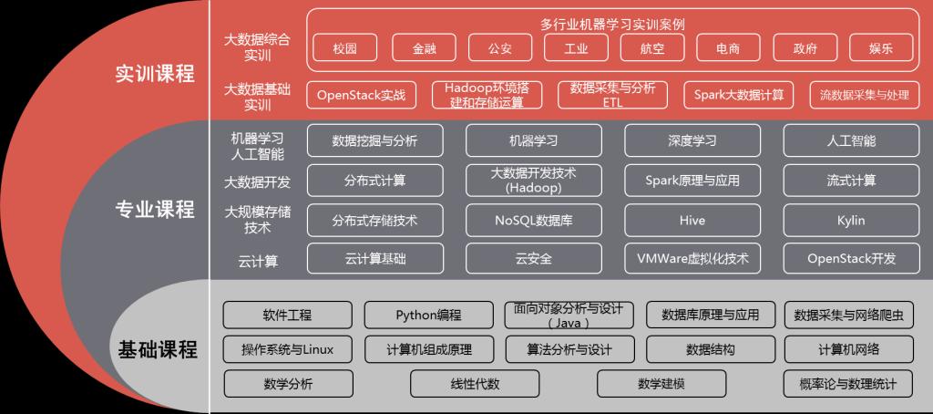 数据科学与大数据技术专业是计算机科学、数学、数据科学、信息管理等多学科交叉融合产生的新工科专业。从大数据应用的三个主要层面(即数据管理、系统开发、海量数据分析与挖掘)出发,培养能够胜任行业、领域大数据应用系统开发、实施及大数据分析的应用型高级专门人才。以大数据系统构架师、数据建模工程师、数据分析与挖掘工程师、大数据研发工程师、大数据可视化工程师为主要培养目标。