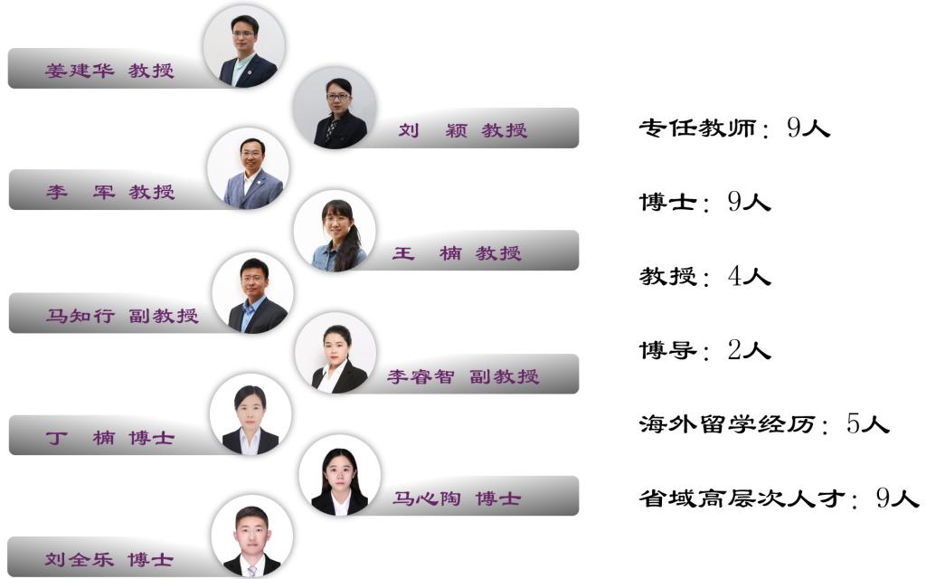 数据科学与大数据技术师资雄厚,现有专任教师9人,全部具有双一流高校博士学位,5人具有高级职称,其中教授3人,6人为研究生导师,其中2人为博导,5人具有海外留学深造经历,全部教师获得省域高层次人才认定,其中D类以上4人。
