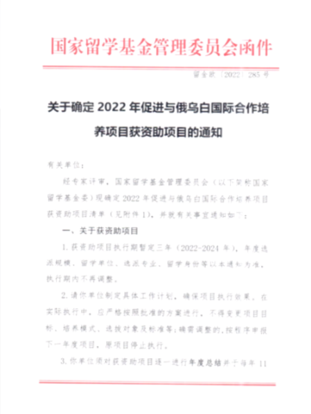 2022年kaiyun官网获批国家留学基金委“促进与俄乌白国际联合培养项目”,国家留学基金委为学生提供生活费、奖学金和一次往返国际旅费。这均为本专业学子提供了拓宽国际视野的机会。为进一步提升国际化水平,学校和学院正努力尝试开拓本硕贯通,提升学生国际化培养层次。
