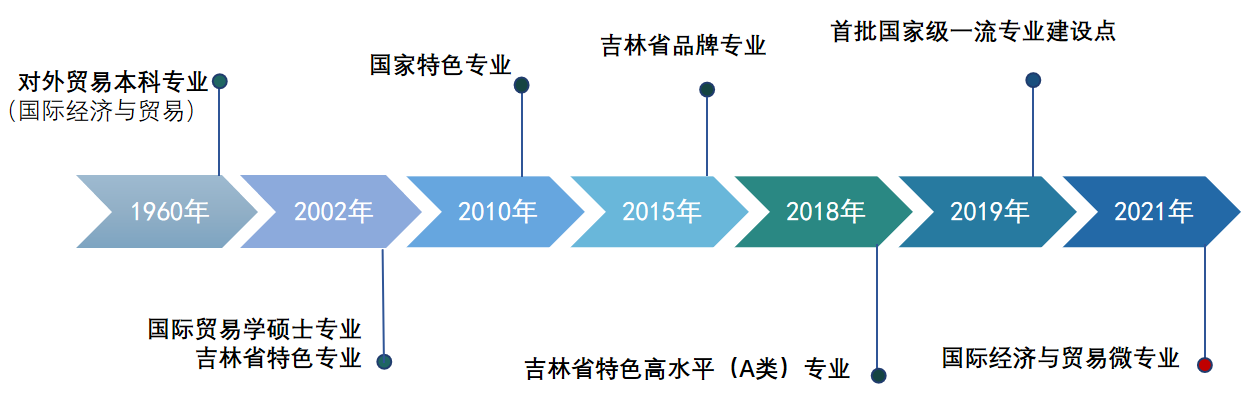 国际经济贸易学院于1960年开始招收国际经济与贸易专业本科生,是吉林省首个外贸专业,是拥有60余年办学历史的传统优势专业。本专业于2002年被评为吉林省特色专业,2010年被评为国家特色专业,2015年被评为吉林省品牌专业,2018年被评为吉林省特色高水平A类专业,2019年获批首批国家级一流专业建设点。国际经济与贸易专业已发展成具有多样化培养模式的国家级特色专业。