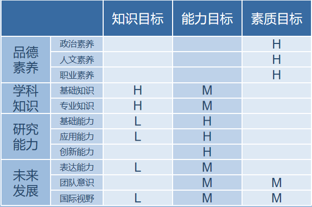 本专业培养目标具体体现为知识、能力和素养三个维度,而毕业要求则从品德素养、学科知识、研究能力和未来发展四个层面出发,细分为11个具体要求,这些毕业要求对培养目标形成了有力的支撑。