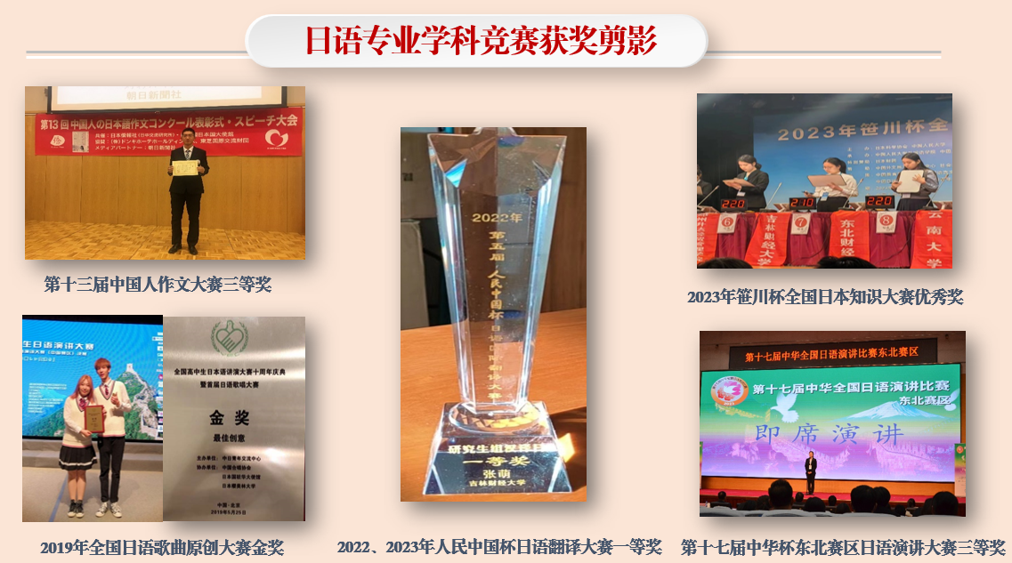 得益于努力的教师团队和崭新的硬件设施,日语专业学生语言水平持续提高,仅近3年获国家级竞赛获奖20余项,省级竞赛获奖60余项。其中,在我系有两名学生在第一届国才杯理解当代日语组比赛中取得了全省前10名的好成绩。