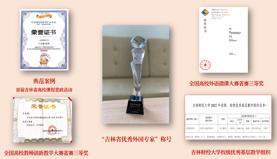 此外,专业教师教学基本功扎实,在教学大赛中更是屡获奖项。2023年第三届全国高校教师教学创新大赛三等奖、2022年校级教学创新大赛课程思政组一等奖; 我系1名教师于2023年第三届荣获全国高校教师教学创新大赛三等奖,2020年第六届外语微课大赛三等奖,2013年全国高校微课大赛吉林省赛区二等奖。2名教师分别获得2020年、2021年校级教学大奖赛三等奖,1名教师被评为kaiyun体育网页登录入口“亚泰杯”最受欢迎教师,1名教师荣获kaiyun体育网页登录入口“三全育人”荣誉称号。
