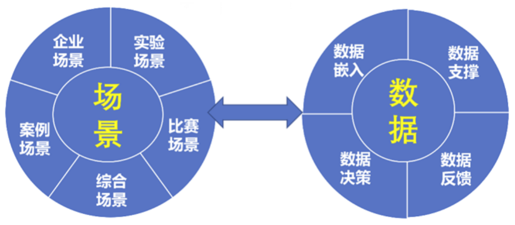 积极开展从虚拟到现实,从理论到实践,从专业到综合,从问题到决策,数据化思维始终贯穿于“企业场景、实验场景、案例场景、比赛场景、综合场景”的多维场景化中,真正形成“场景为基、数据为翼”双轮驱动培养模式特色。
